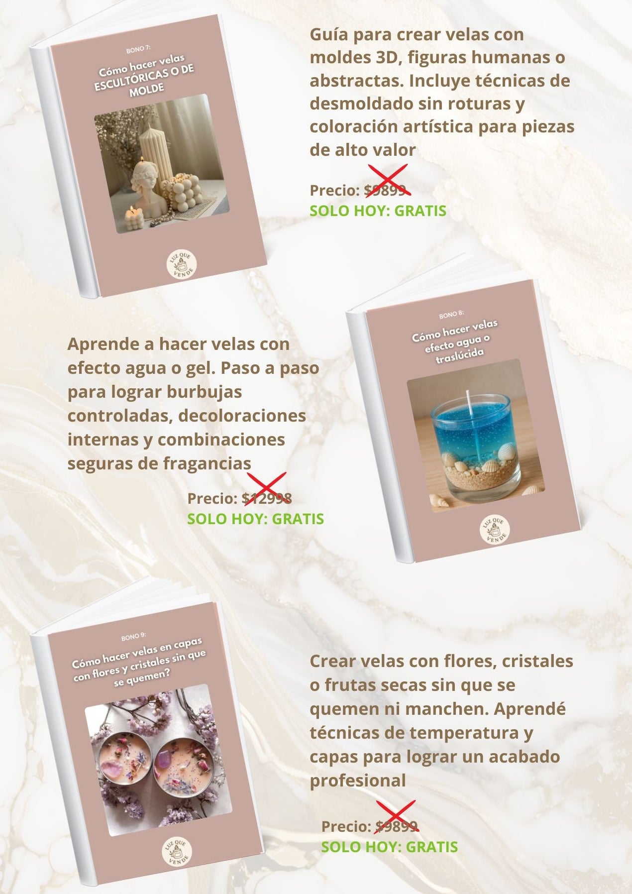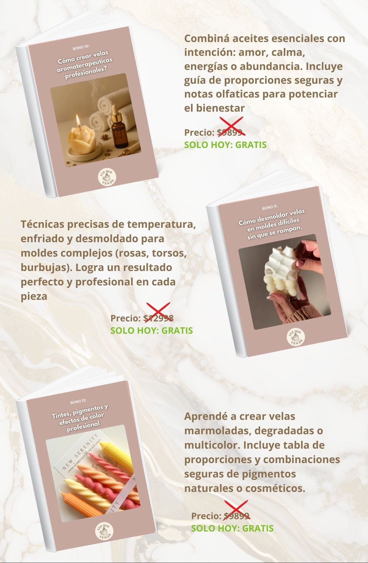No necesitas experiencia previa. Vas a aprender desde cómo fabricar velas artesanales de calidad hasta cómo ponerles precio y venderlas, todo explicado de forma práctica para que puedas seguirlo aunque nunca hayas hecho una vela antes.
